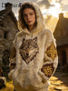 Frauen Viking Celtic Wolf Muster Kunst Casual Flanell Hoodie