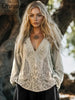 Frauen Vintage Tribal Keltisches Knoten Spitze Patchwork V-Ausschnitt Leinen hemd