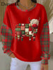 Frauen Weihnachten Highland Kuh Patchwork Print Geripptes Rundhals-Sweatshirt