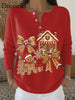 Henley-Pullover mit festlichem Lebkuchen-Hausdruck für Frauen