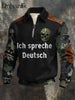 Herren Edgy Camo "Ich spreche Deutsch" Schädel Leder-Akzent-Quarter-Zip-Sweatshirt