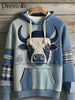 Herren Niedliche Highland Kuh Langarm Denim Patchwork Übergroßer Hoodie