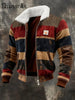 Herren Retro-Farb block druck lässiger Pelz kragen Sweatshirt mit Reiß verschluss