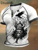 Herren Retro Viking Art bedrucktes Rundhals-T-Shirt mit kurzen Ärmeln