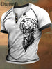 Herren Retro Viking Art bedrucktes Rundhals-T-Shirt mit kurzen Ärmeln