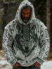 Herren Retro Viking Wolf Totem Flanell Warm Kapuzen Sweatshirt