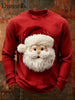 Herren Retro-Weihnachtsmann-Print-Waffel-T-Shirt mit langen Ärmeln