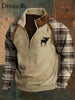 Herren Vintage Elch Weihnachts gitter Spleißdruck Pelz kragen Reiß verschluss Flush Outdoor Sweatshirt