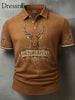 Herren Vintage Hirsch Kunstdruck Western Waffel Polo Shirt