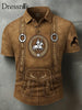 Herren Vintage Hirsch Kunstdruck Western Waffel Polo Shirt