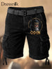 Herren Vintage Viking Mythos bedruckte Textur Kordel zug Tasche Freizeit-Cargo-Shorts