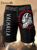 Herren Vintage Viking Mythos bedruckte Textur Kordel zug Tasche Freizeit-Cargo-Shorts