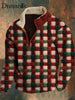 Herren-Weihnachtsflanell-Rot-Grün-Gitter-Print-Pelzkragen-Reiß verschluss, bündig, Outdoor-Sweatshirt