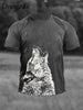 Herren Wolf Print Casual T-Shirt