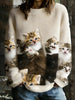 Katzen-Kunstdruck-Flanell-Sweatshirt für Damen