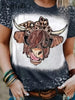 Kurzarm-T-Shirt für Frauen mit Hochland kuh bedruckt