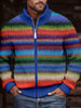 Mehrfarbige gestreifte, gemütliche Strickjacke für Herren
