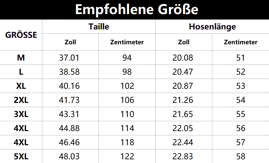 Größen tabelle: