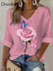 Retro Brustkrebs Perle Rose Blumen Schmetterling Abstrakt Print Lässige Baumwolle Waffel Langarm T-Shirt
