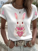 Retro-Brustkrebs-Perlen-Schmuck mit niedlichem Kaninchen druck bequemes kurzärmliges T-Shirt aus Baumwolle