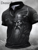 Retro nordische Viking-Grafik gedruckt Vintage-Stil V-Ausschnitt kurze Ärmel Polo-Shirt
