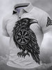 Retro nordische Viking-Grafik gedruckt Vintage-Stil V-Ausschnitt kurze Ärmel Polo-Shirt