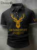 Retro Oktoberfest Hirsche Lederhosen Künstlerisch bedruckt Karierte Textur V-Ausschnitt kurze Ärmel Polo-Shirt