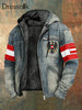 Retro österreich isches Emblem Denim-farbige Fleece-Kapuzen jacke