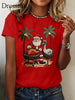 Tropisches Weihnachtsmann-Print-T-Shirt für Damen