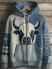 Unisex Süße schottische Highland Kuh Langarm Reiß verschluss Denim Panel Übergroßer Hoodie