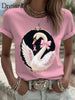 Vintage Breast Cancer Schwan Perlen drucken lässiges Kurzarm-T-Shirt aus Baumwolle