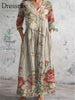 Vintage Floral Art Print schicker V-Ausschnitt Dreiviertel-Ärmel Elegantes Midi-Kleid