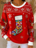 Vintage-Weihnachts-Pailletten-Strumpf bedrucktes lässiges, langärmliges Oberteil