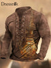 Vintage Western Art Print Country Style V-Ausschnitt Henley Langarm Hemd