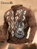 Vintage Western Art Print Country Style V-Ausschnitt Henley Langarm Hemd