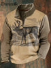 Waffel-Sweatshirt Herren Western Vintage Elk Print, locker, mit Ständer halsband