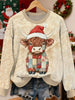 Wunderschönes Weihnachts ochsen bedrucktes langärmliges Sweatshirt